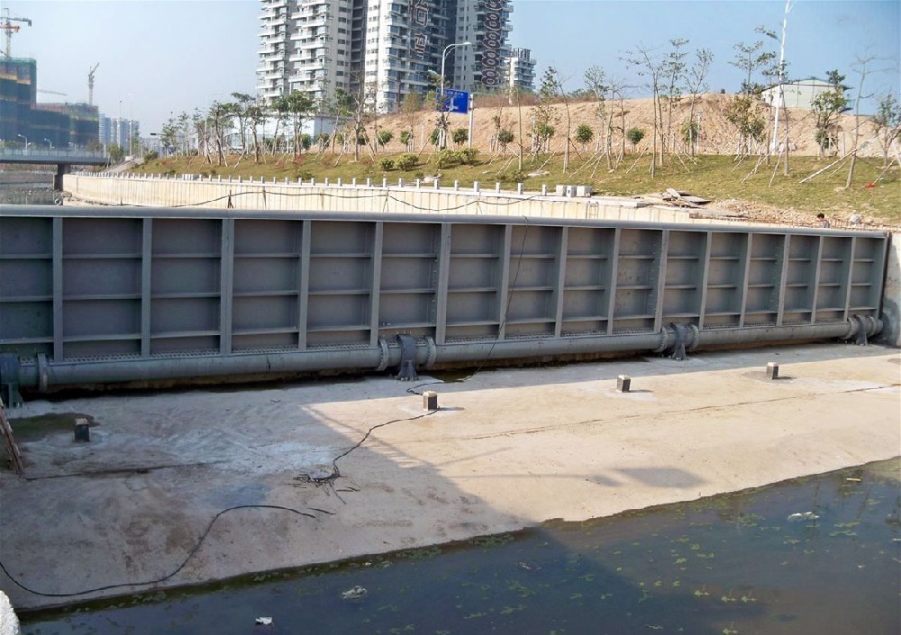 鋼閘門(mén)是給排水工程、水利、水電工程中常用的攔水、止水設(shè)備,由門(mén)框、閘板、密封圈及可調(diào)式鍥型壓塊等部件組成。鋼制閘門(mén)以?xún)?yōu)質(zhì)鋼板為基材,采用橡膠止水、防腐方式為表面進(jìn)行噴沙除銹及熱噴鋅,鋼閘門(mén)具有結(jié)構(gòu)合理堅(jiān)固、耐磨耐蝕性強(qiáng)、性能可靠;安裝、調(diào)整、使用、維護(hù)方便等特點(diǎn)。